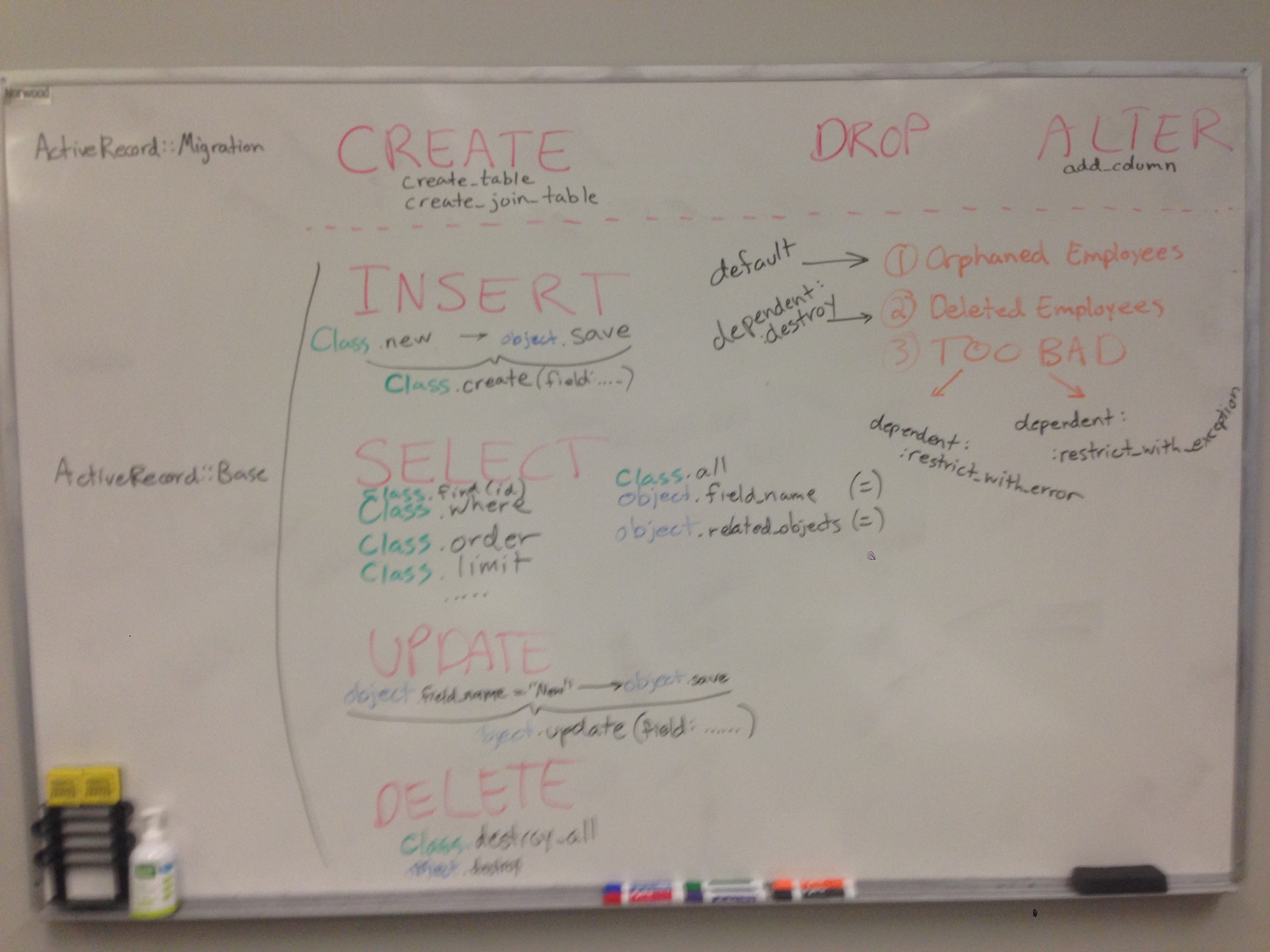 - Quick mention of ActiveRecord Methods which map to SQL clauses